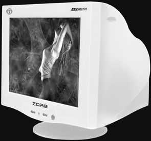 佐尼CRT显示器ZD770A,全黑机身,配橙色跳跃按键,明快而时尚,同时它还有一个非常好听的名字:橙如夏花。另一款型号为ZD770Ⅱ,珍珠白机身,名为白领丽人。这两款显示器都可上1600×1200的分辨率,带宽都在150MHz以上。