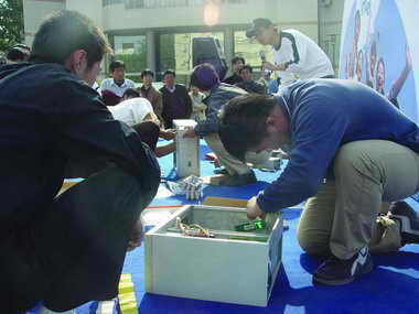 “太阳当头照,CPU对我笑,主板说,快!快!快!一定要把头奖拿到手……”这是小编为参加英特尔公司举办的DIY攒机大赛的山东大学学生编的“比赛进行曲”。这次比赛有十六名同学参加,逐对比试。只见台上选手挥汗如雨,主持人在讲解之余,变为后勤人员,忙着为选手擦去额头的汗水(不能滴在主板上啊)。台下,“亲友团”在加油助威,一位支持者半个身子已经到了台上,如果这时谁递给他一把螺丝刀,相信他会亲自上阵……