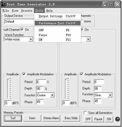 好了,这么多的测试信号,选择一个你认为较好的来“煲”你的爱机吧。你也许会问白噪音在哪里,Wave Function下的White noise就是了!