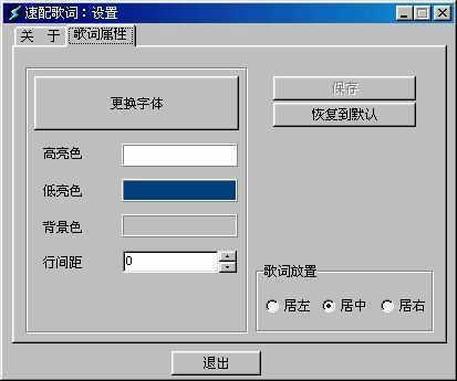 速配歌词并没有太多需要设置的地方。如果想要改变歌词显示属性,可以在歌词窗口中点击右键,弹出“设置”窗口,打开“歌词属性”选项卡,在这里我们可以更改字体、显示颜色以及字间距等(图2),设置完成后,点击右侧的“保存”按钮,然后退出即可。