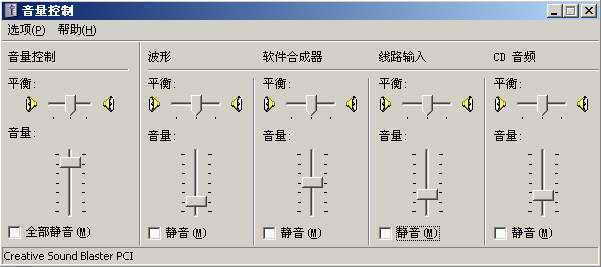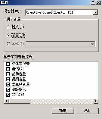 双击任务栏中的小喇叭图标,打开“音量控制”对话框,选择“选项→属性”,打开“属性”对话框(图1),点击“录音”单选框,则“显示下列音量控制”栏中与录音有关的选项都被选中。退回到“音量控制”窗口(图2),将所有栏中“静音”项上的钩取消。