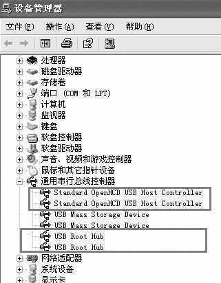 当我们按照上面的方法安装USB2.0驱动后,USB2.0设备是可以顺利使用了,但在WinXP中使用USB1.0/1.1等低速设备时,有可能出现系统无法识别的情况,我们可以这样来解决:打开设备管理器,打开“通用串行总线控制器”,然后在“Standard OpenHCD USB Host Controller”USB总线控制器上单击右键,选择“卸载”,重复卸载两次,将两个USB总线控制器都卸载掉(必须要全部卸载否则仍无法使用USB1.1设备),然后单击“扫描检测硬件改动”按钮,系统会重新扫描USB控制器驱动程序,扫描结束后设备管理器内会出现两个USB Root Hub和两个Standard OpenHCD USB Host Controller,到这里WinXP下的USB驱动程序安装才算完成(图5)。不过低速USB设备的问题仅仅出现在WinXP系统,如果是Win2000/2003系统,不会出现USB1.0/1.0 设备无法识别的问题,所以也不用再更新什么。