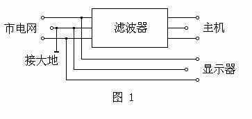 将它接在电脑主机与市电电网之间,显示器直接接到市电电网上。滤波器的接地端用一根4mm2粗的铜芯电线接到自来水管上,自来水管要与大地良好接触。