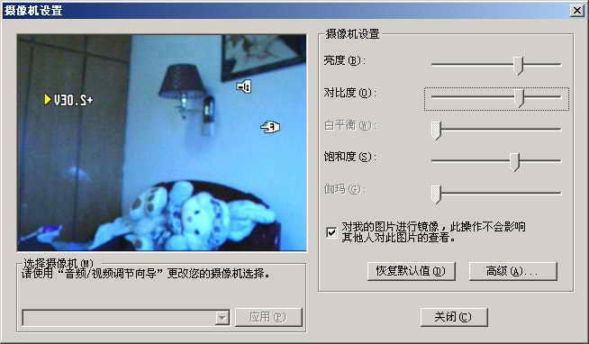 在视频聊天过程中,如果发现影像效果不好,还可以从聊天窗口的“工具”菜单中选择“网络摄像机设置”命令,并在弹出的设置对话框(图3)中来调整亮度、对比度等参数。