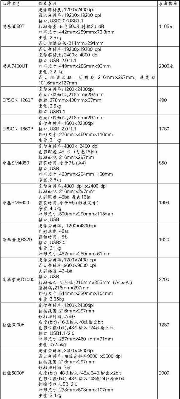 如下图为近期扫描仪参考价格