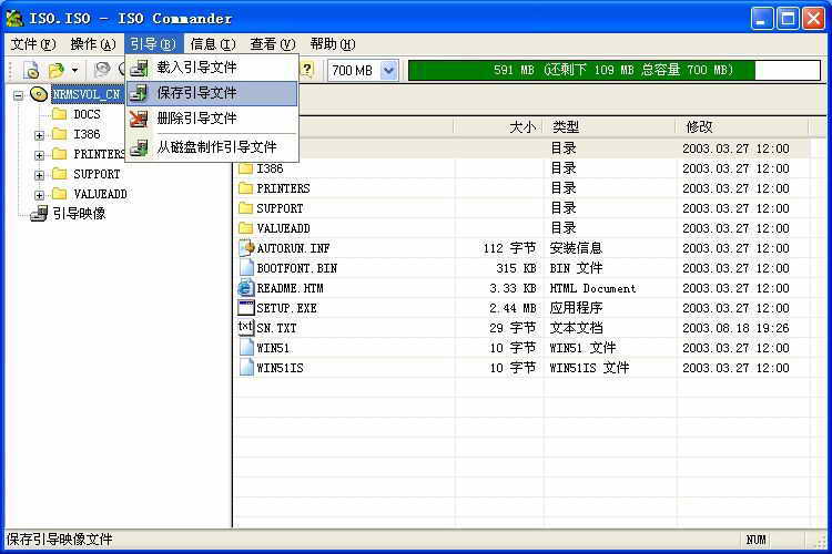 2.点击“引导→保存引导文件”命令,这时程序会自动把光盘引导文件以IMG文件格式保存下来(图2)。