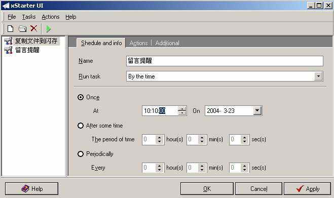 Windows的计划任务能为你完成不少工作,但如果要完成关机重启、删除文件、启动服务、拨号上网、备份文件、发送邮件一类的操作,还必须通过较为复杂的设置过程。现在,xStarter就可以帮你这个忙,来完成计划任务不易完成的工作。