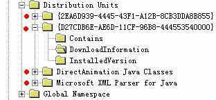 打开注册表,展开“HKEY_LOCAL_MACHINE\SOFTWARE\Microsoft\CodeStoreDatabase\DistributionUnits\{D27CDB6E-AE6D-11CF-96B8-444553540000}\DownloadInformation”分支,如图所示。 可以看到:“CODFBASE”键的值是“http://download.macromedia.com/pub/shockwave/cabs/flash/swflash.cab”,INF键的值是“C:\WINDOWS\DownloadedProgramFiles\swflash.inf”。这就是说,自动弹出的升级对话框由后者控制,前者告诉了我们在哪里去升级,当然,这是自动的,只要你同意升级,程序就会自动链接到这里。知道这一原理后,要关闭它也就很简单了,将“INF”键删除即可。