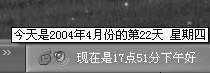 修改时间日期无须修改注册表,你相信吗?在此笔者要将时间显示为“现在是17点21分下午好”,日期显示为“今天是2004年4月份的第22天星期四”(如图)。下面让我们来看看具体操作。