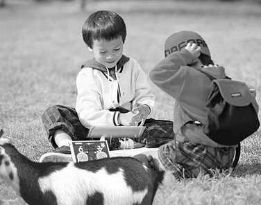 仔细分析这张图片,山羊有很大部分可以利用仿制图章工具,用草坪来覆盖掉。山羊遮挡的人物部分,如果用仿制图章工具有一定难度,不过聪明的人可以想到用道具来遮挡最后难以处理的部分。