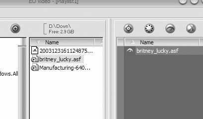 启动安装后的EO Video,把刚改了名的britney_lucky.asf文件用鼠标拖到右边的文件列表中(图1)。
