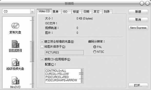启动Nero,在启动后选择“视频光盘”的刻录方案后点新建按钮(图2)。