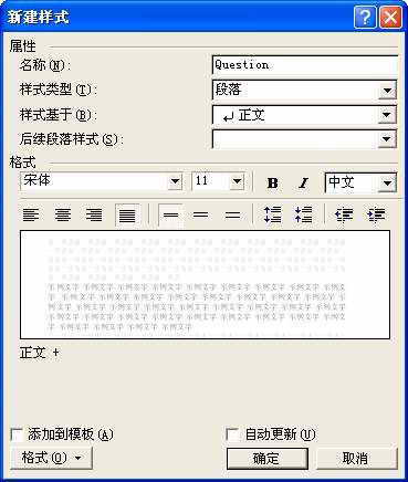 按照前面设置项目符号“Q”的步骤,把Answer样式的项目符号设置为粗体的“A”。在“样式和格式”任务窗格中,右键点击以前定义的Question样式,并选择菜单“修改样式”。将“后继段落样式”设置为Answer。点击“确定”,关闭“修改样式”对话框。