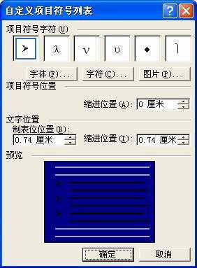在“新建样式”对话框的“名称”中输入问题段落的样式名称,例如Question(尽量让名称体现出样式的用途)。在“样式基于”中输入问题样式的基础样式。一般可以选用“正文”。点击“格式”,选择“编号”,Word显示出“项目符号和编号”对话框。从自定义的项目符号中选择一种,注意选中的项目符号类型应当是通常不用的类型。点击“自定义”,Word显示出“自定义项目符号列表”(图2)。