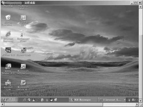 图4就是成功连接后的画面,默认全屏显示,其实操作简单得很,如果你拥有足够的权限,那么与操作本地计算机几乎没有什么区别,而且连接成功后会自动锁定远程计算机(返回到登录界面),而且无人可以在被连接端看到正在进行的远程操作,这样可以避免双方同时操作导致系统错误。