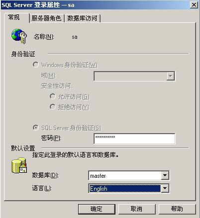 步骤如下:打开企业管理器,展开分层树状结构中的服务器,双击安全性下的登录选项。右击“SA”,选择属性,两次输入密码后确认即可(图1)。也可通过下面语句为“SA”设置密码:SP_Password Null,'Password','SA'。