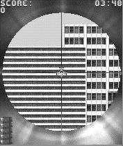 喜欢用狙击枪的玩家可以过瘾了,在这个游戏里你扮演的是警方的一名狙击手,消灭所有的匪徒。游戏的画面非常棒。不过我觉得这款游戏最好的地方就是音效。配合560机的和弦音,模拟出的效果不比电脑上的差。操作方法:5键是射击,0键加子弹。游戏有三种难度选择。