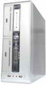 美基小机箱最大的特色在于机箱虽小但完全兼容大小主板。除了要配用专用的小电源之外,其它方面与一般的机箱无异。机箱设计了两个光驱位一个软驱位。前面板左边设计了前置USB与前置音频接口。另外机箱前面板还提供了一个液晶显示屏,可以显示机箱内温度、风扇转速、电源与硬盘的工作状态,小小机箱功能不少。