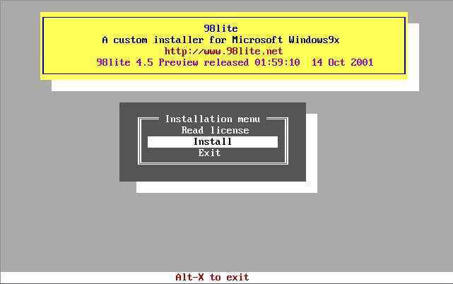 提示:如果是正式版的98lite会有第四个选项──“4.98MICRO”,即最大限度地去除了所有的捆绑软件。选择2或3时的安装相对简单,而选择1或4时的操作步骤几乎完全相同,所以接下来笔者主要介绍SLEEK的安装方法。