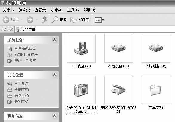 我的DX6490相机在WinXP系统下不需要安装驱动即可使用,将处于开启状态的相机与电脑用USB线连接好后,系统会自动识别出相机(图1),并会在我的电脑中多出一个相机的图标。