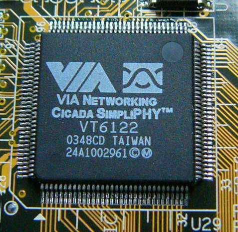 VT6122是VIA开发的千兆网络适配芯片,直接给KT880芯片组提供了千兆网络功能。当然,正式零售版的KT880同样可以灵活地搭配VT6103这样的百兆网卡芯片让价格更有竞争力。