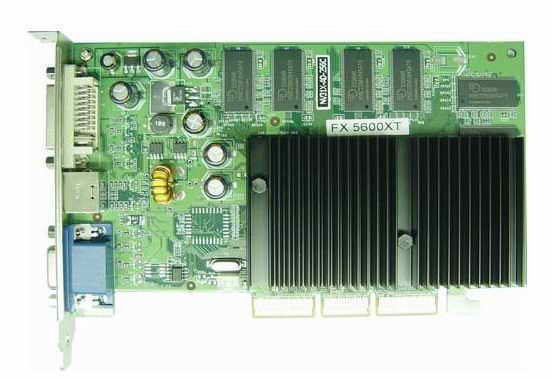 该显卡采用GeforceFX 5600XT芯片,核心频率为235MHz,带256MB DDR显存。具有NVIDIA CineFX加速引擎,NVIDIA Intelisample 技术。完全支持DirectX 9.0的Vertex Shader 2.0+ 和PixelShader 2.0+硬件加速技术,支持OpenGL 1.4,支持DirectX和S3TC纹理压缩技术。带D-Sub、S-Video和DVI接口。