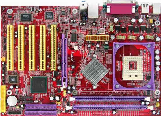 该主板采用ATX标准红色PCB板,采用Intel 865PE+ICH5芯片组,支持800MHz FSB P4超线程处理器,主板提供两根内存插槽、1根AGP 8×的显卡插槽、5根PCI插槽。这款主板上预留了一个千兆的网络端口。此外,主板还具有硕泰克的一些特色技术:第二代红色风暴、MBA内存加速技术、UV通用电压技术、以及超频发烧友所挚爱的超频三宝。