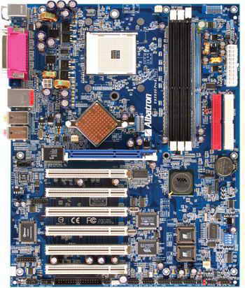 主板采用ATX板型,采用nForce2 Ultra 400+MCP 芯片组,支持全系列SOCKET 462封装形式的CPU,支持400MHz FSB。主板提供两根内存插槽、1根AGP 8×插槽、5根PCI插槽、6声道AC97声卡、6个USB 2.0接口。此外,主板还具有一些特色技术:第二代红色风暴、ABSⅡ烧不死技术。