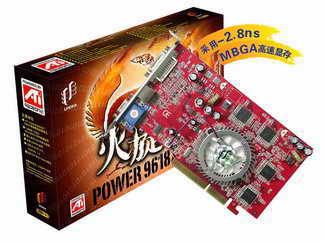 双敏火旋风Power 9618XT采用ATI Radeon 9600XT图形芯片,完全支持DirectX 9。该显卡采用八颗mBGA封装的三星2.8ns DDR显存颗粒,容量为128MB,位宽128Bit,核心/显存频率达到500/650MHz,VGA、DVI、TV-OUT接口一应俱全。