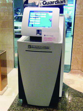 这是小编在香港一家酒店中见到的。通过互联网,这台多媒体信息机可以为旅客提供全球各大报纸的内容。用户通过触摸屏选定了自己所需要的报纸后,支付5美元,就可以打印出自己想看的报纸,非常方便。