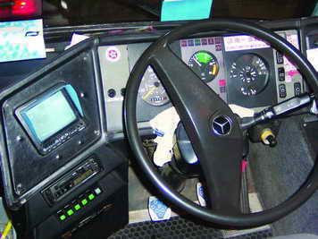 这是香港公共汽车上最常见的。这个屏幕上所显示的,是汽车右尾灯旁摄像头所拍摄的情景。这样,司机在开车的同时,可以很方便地观察后面的情况,决定是否要避让来车。