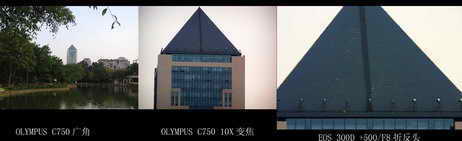 高档数码相机在成像质量以及手控操作创作意图的实现上,有着消费级DC无法企及的优势;而消费级数码相机的大光学变焦能力又将普通高档数码相机的远摄能力甩在后面,EOS300D作为低档单反数码相机配合500mm折反镜头实现的低价位组合表现如何呢?现在让我们来看看加农大炮与ULTRA ZOOM 750的对决吧(如图5)。