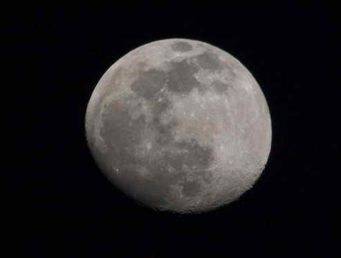 月亮两图片的清晰度并不太理想,最初以为是手动对焦不准造成的,事后分析可能有两点原因:一、与地球自转和月球公转有关系,在超长焦下的快门速度(1/125秒)不够快,造成的影像有移动。二、300D没有反光镜预升的功能,所以会带来一定的机身震动,从而影响清晰度。这个震动实际上是很微弱的,但是因为是超长焦的镜头,所以可能也会有一定的影响,而反光镜预升等功能也是CANON 300D与自家另一款更高档的数码单反相机EOS 10D的重要差距之一。