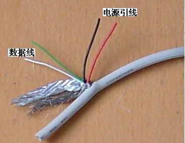 1.先将USB延长线的插头端剪去,再用小刀将USB延长线剪切端的外皮划开,整理出其中的四根引线(图2),然后将USB插头插入PC的USB插槽,用万用表测量,看哪两根线之间有5V电压。如果四根线是黑、白、黄、红的话,一般情况黑色的引线就是电源负极,红色的引线为电源正极,这样就能找到USB的电源输出线。找到两根电源输出线以后,将其余引线剪断不用。