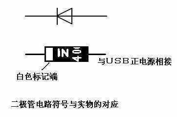 3.二极管一只,选用IN4007或同系列的都可以,它的作用是降压。由于大多数手机都是使用3.6V的电池,一般这种电池要求充电电压上限在4.5V左右,如果直接用5V电压进行充电的话,很可能会损坏手机电池,一般的手机原配充电器常用4.3V对手机电池进行充电。因此要用USB接口给手机充电,必须串联一个二极管进行降压。