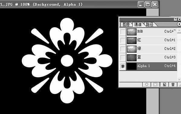 1.在Photoshop中打开个材质图片,在通道面板中新建一个Alpha通道。设置前景色为白色,然后在工具面板中选取形状工具,选取一个形状,在Alpha通道中拉出一个图案形状(图1)。