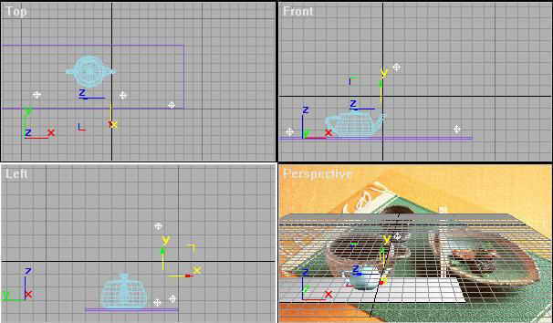 在3DS MAX中要给一个平面的照片加上一个三维物体,使其光源和投影都非常逼真,这很有意思,下面以在图1中放置一个茶壶为例进行制作介绍。