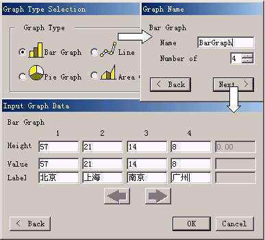 我们在“Height”(高度)栏里依次输入各项数据,“Value”(数值)栏会相应出现相同的数值,这些数字将在三维图形上显示。最后在“Label”(标志)栏输入每个图形的中文注释(图1)。完成后点击“OK”返回主窗口。