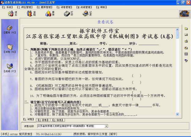 软件名称:试卷生成系统Ⅲ单机版V3.12