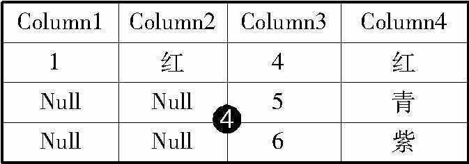 执行SELECT * FROM A RIGHT OUTER JOIN B ON(A.Column2=B. Col umn4),得到的结果集如表4所示。