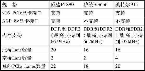 要来的,始终要来。我们知道,PCI架构已经走过十年历程,而最近几年前端总线、内存以及显卡的数据带宽需求倍增,PCI已经跟不上脚步了。对于这一点,芯片组厂商的步调是一致的:PCIe(即PCI Express)势必取代整个平台的总线架构。只是各家在具体的产品规格上有所区别:如英特尔的915和矽统的SiS656芯片组在北桥部分提供了16个Lane,而威盛的PT890则提供了20个Lane。而在南桥部分,英特尔提供了4个Lane,矽统和威盛则只提供了2个Lane(注:简单地讲,Lane的数量代表了PCIe的数据带宽能力,如带宽为4GB/s的16× PCIe就需要16个Lane,而1× PCIe则只需要1个Lane即可,详细规格见表)。新一代芯片组在北桥/南桥部分剩余的PCIe Lane将支持更多的PCIe设备,比如PCIe接口的千兆网卡等。