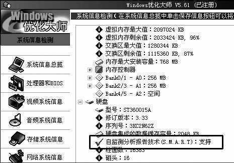 我的配置为AthlonXP 1700+、VIA KT333+VT8233A芯片组、希捷酷鱼V60GB硬盘,同样装了VIA IDE Miniport Driver,但没有该文作者遇到的问题,不论是《Windows优化大师》,还是AIDA32,都显示支持S.M.A.R.T.功能(如图)。