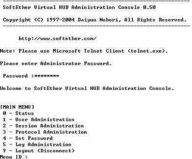 下载后先进行安装,安装方法跟大部分软件一样(可参见2004年第4期《电脑报》G1版)。重启计算机后,运行开始菜单里的SoftEther Virtual HUB Administration就可以进行虚拟Hub的管理和设置了。