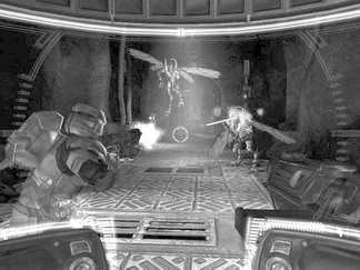 演示一开始,我们看到了新作的最大改进──玩家可以手持两种武器战斗。例如利用左手中的外星人武器Needler的跟踪功能来确定敌人的位置,然后用右手中的常规武器冲峰枪迅速将敌人击毙,最后将敌人的武器据为己有。和前作一样,游戏还包含了时下FPS最流行的可驾驶车辆的元素,不同的是,玩家可以夺取敌人所驾驶的车辆,还可以利用局部攻击使它们报废(例如飞机的机翼或吉普车的轮胎)。演示的末尾展示了游戏场景值得称赞的互动性。在这张名为Zanzibar的地图上,玩家只有找到主控制台才能打开通往敌方基地的大门。放下场景中的吊桥则可以到达游戏中的秘密地点──个被风扇所掩盖的洞穴,而玩家将会获得游戏中最强大的近器武器──Covenant Energy Blade作为奖励。演示的过程完全是以多人游戏模式为基础,微软醉翁之意不在酒的心态十分明显──这分明是在为XBox LIVE作宣传嘛!