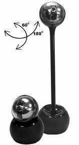 外形前卫、超酷是这款摄像头的一个特点。摄像头通体呈黑色,由两部分组成。主体是球形,下面有个球形支座,两者合在一起显得非常时尚。这两部分也能分离。罗技还提供了一根长近23cm的连接棒用以连接这两个部分,方便使用者调节摄像头的高度,这体现出产品的人性化。它只有380克重,总体显得很小巧可爱。它还提供了长2.7m的USB连接线,方便使用者随意移动。