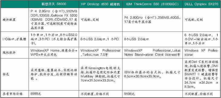表中列出了市场上的一些典型“瘦身型”电脑的配置与特点。