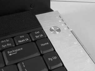 左侧的各种接口也采用了磁性翻盖设计(图2),这样能防止灰尘进入,同时也保证了外观的整体美感。内部无缝隙的触摸板设计,同样起到了防尘的功能。在右侧W1N同样设计了不少的快捷键,但是设计得十分隐蔽(图3)。一般的笔记本电脑都会在键盘的两侧或者上面设计快捷键,但W1N却设计在右侧的边上,显得不那么突兀,在不影响美观的同时,还能实现许多功能──其中包括华硕的Power 4 Gear+(可随意切换到不同工作状态)、收发电子邮件、启动IE、使用或停用触摸板、切换多声道等等功能。