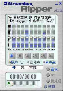 启动后软件界面如图1(这里以汉化版为例),所有功能一目了然,右下方四个按钮的功能分别为载入待转换的文件、抓CD音轨、批处理文件、进行转换。
