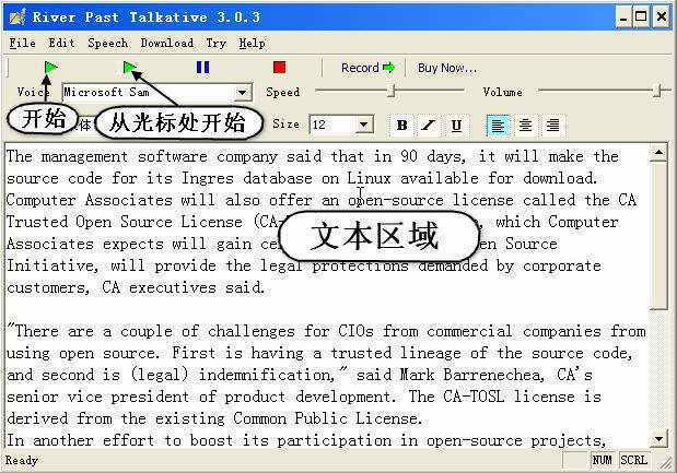 软件亮点:利用微软的Text-to-Speech引擎,可以实现由文本到语音的转换。