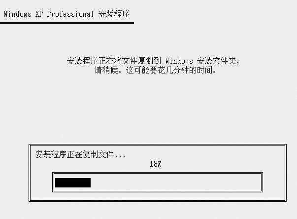 格式化完成后,安装程序即开始从光盘中向硬盘复制安装文件(图5),复制完成后会自动重新启动。